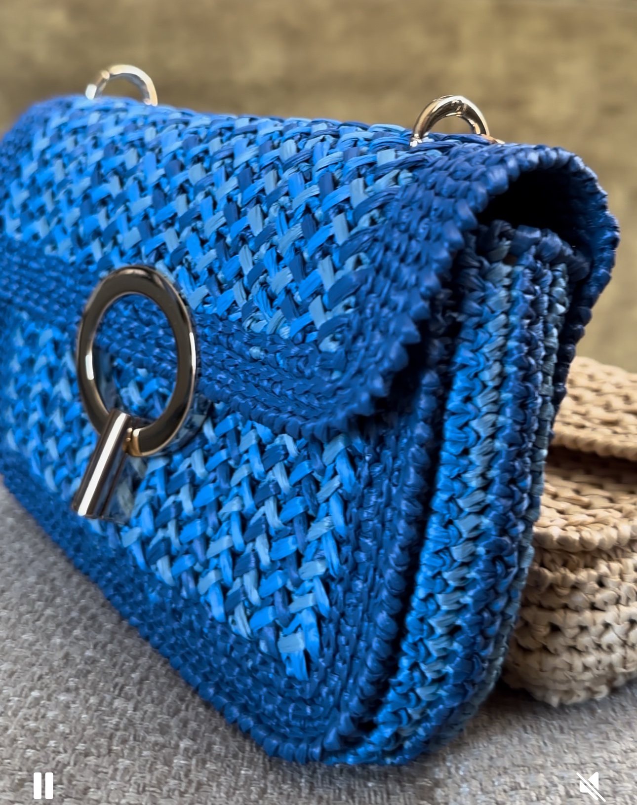 Le sac est conçu avec une base en raphia, ajoutant une touche naturelle et authentique à son design. La bandoulière en chaîne dorée apporte une note de sophistication, tandis que le fermoir rond ajoute une touche finale élégante. Si vous préférez une option rectangulaire pour le fermoir, il vous suffit de nous contacter et nous serons ravis de répondre à votre demande.