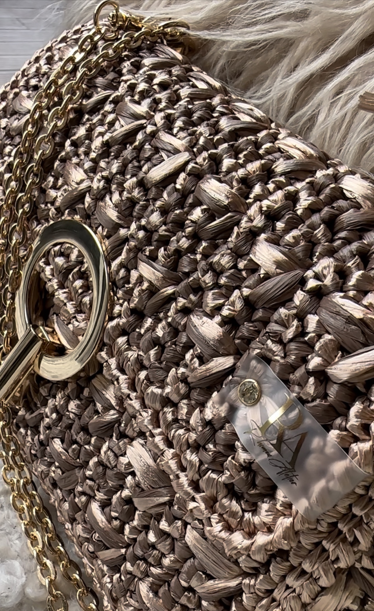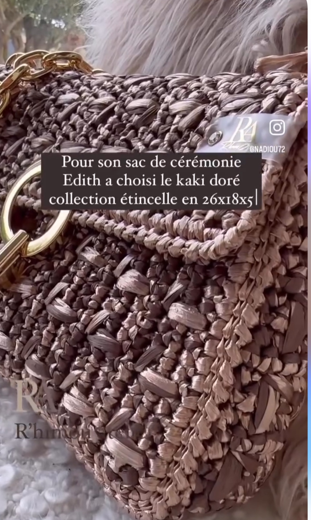 La bandoulière en chaîne dorée ajoute une élégance supplémentaire à l’ensemble, conforme parfaitement à l’esthétique sophistiquée du sac. De plus, le fermoir rond apporte une finition délicate et féminine (possibilité de demander un fermoir rectangulaire pour une touche plus moderne).